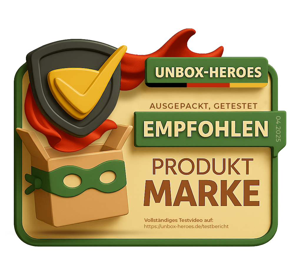 Das Unboxing Testsiegel ist ein von uns mühevoll entwickeltes Marketingtool und zeichnet sich besonders durch ein am Markt einzigartiges & auffälliges Designkonzept aus.